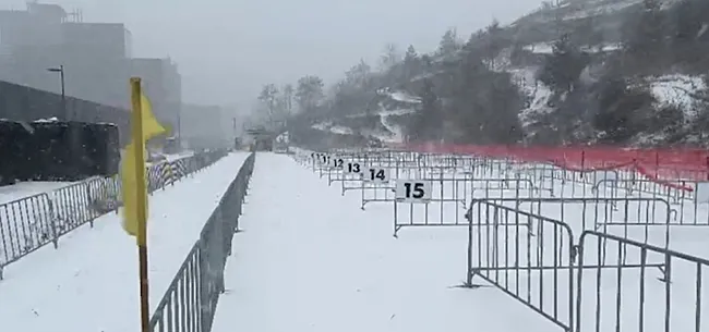 Parcours noodgedwongen aangepastOrganisator Erwin Vervecken zit dan ook al behoorlijk met de handen in haar. "Er is de voorbije weken op deze omloop getraind, maar door de vrieskoude zijn de sporen bevroren. Nu is er een sneeuwtapijt bijgekomen, waardoor de renners de sporen echt niet zien", weet hij bij Sporza.