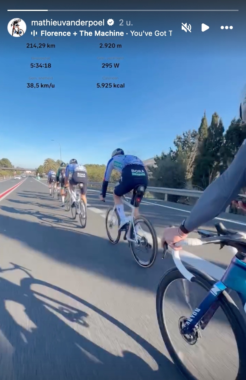Wie Mathieu van der Poel volgt op sociale media, kent intussen het concept: diep in de winter duikt plots de zogeheten MVDP Classic op. Geen wedstrijd, geen rugnummers, maar wel een genadeloze trainingsrit langs de Spaanse kust. Ook dit jaar was het opnieuw raak, met een select groepje renners dat zich liet meeslepen in wat gerust een marteltocht mag worden genoemd.