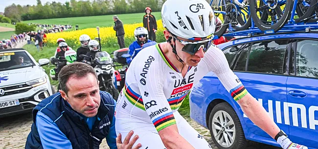 Hulp van de motardsZo reed Pogacar immers tot tweemaal toe lek, zeker de eerste keer was het penibel. Amper zo’n 20 kilometer voor het Bos van Wallers – dat uiteindelijk alweer zeer bepalend zou – blijken, sloeg het noodlot toe. De wereldkampioen moest zelfs even op een neutrale fiets van Shimano verder.